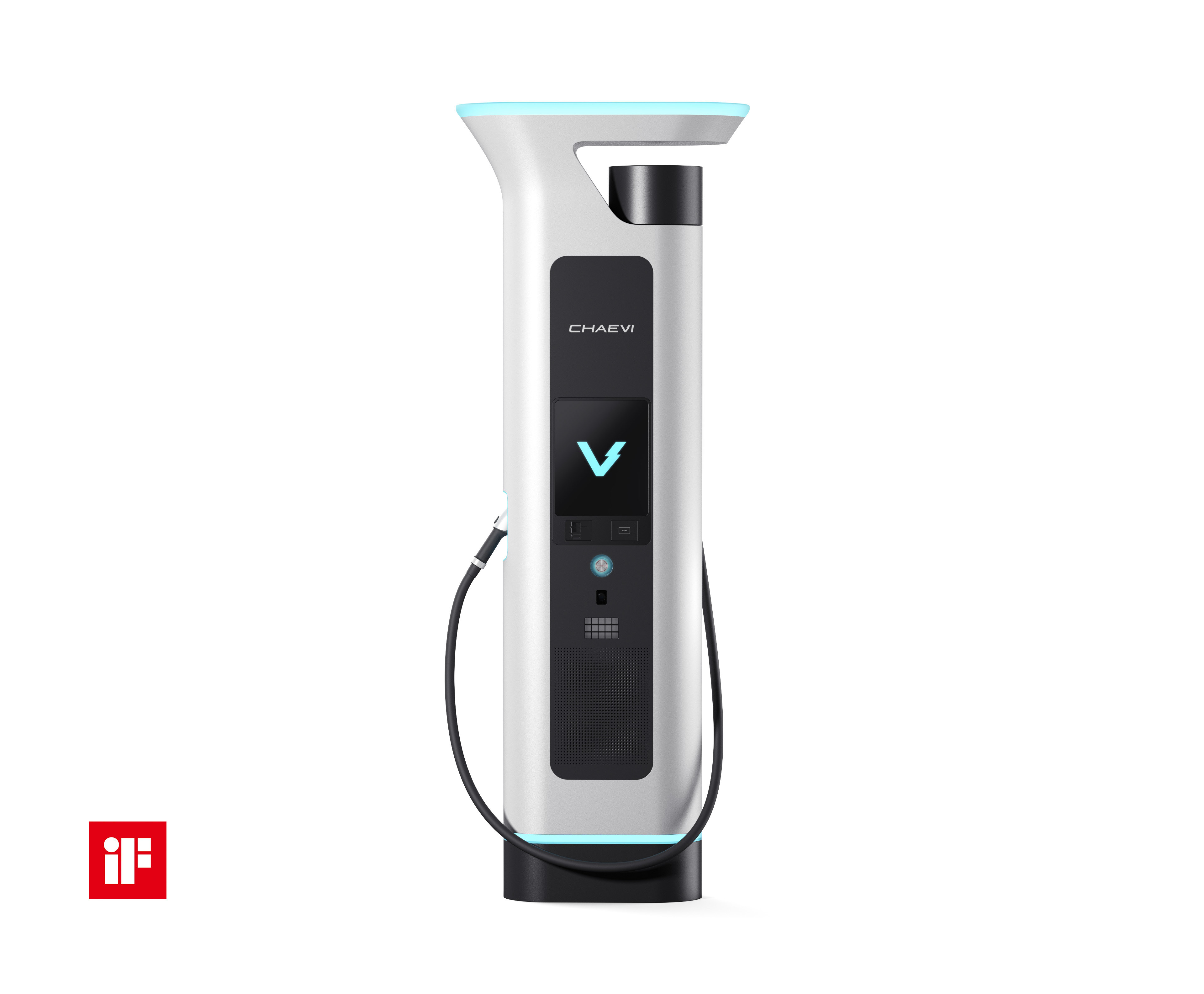 VLND designed an ultra-fast electric vehicle charger for Chaevi, a leader in South Korea’s EV charger market. The design highlights the manufacturer’s V-shaped symbol, evoking speed, while the unique top shape and lighting make it eye-catching from a distance. This innovative charger uses camera vision to identify the vehicle model and automatically rotates the cable to the left or right side, aligning with the vehicle’s charging port.